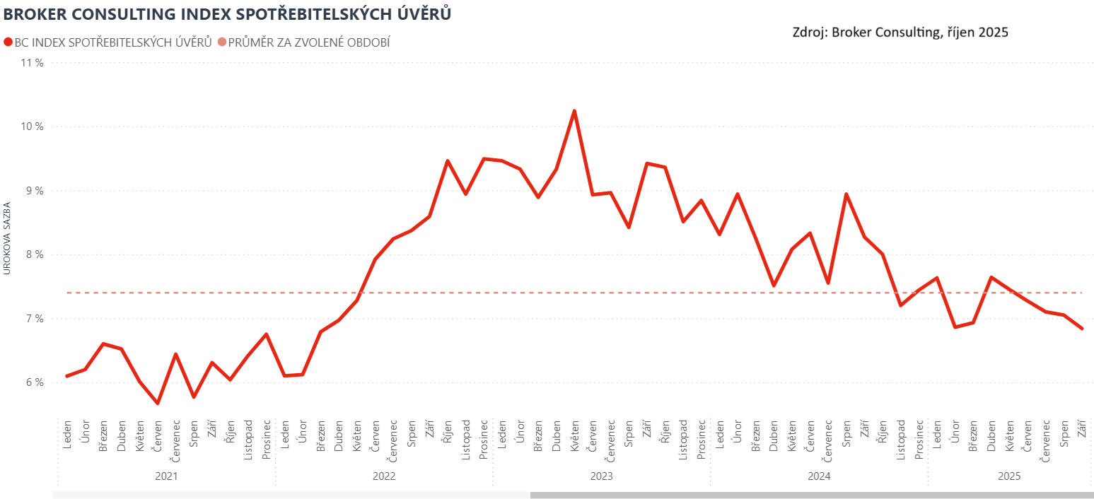 Broker Consulting Index spotřebitelských úvěrů je analytický nástroj, který ukazuje průměrnou úrokovou sazbu
