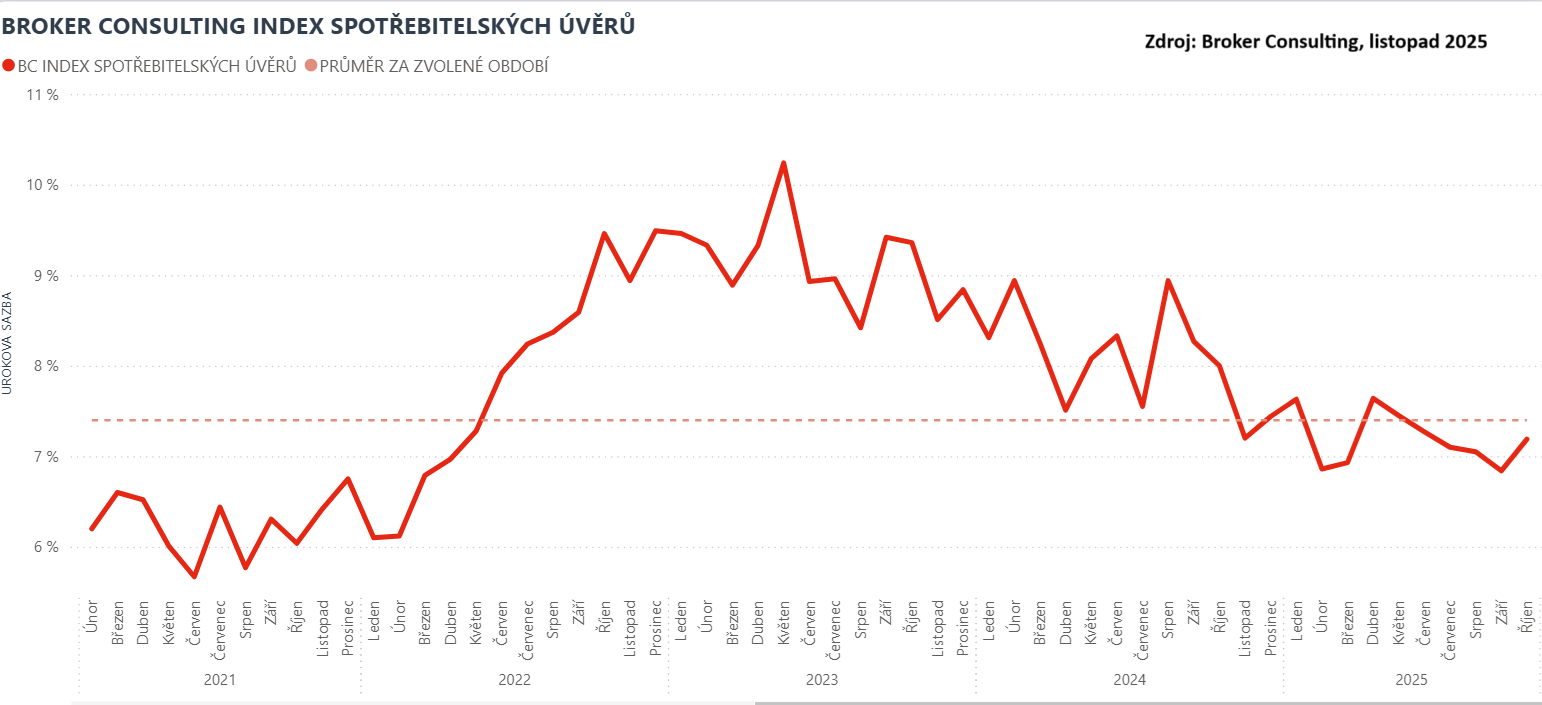 Broker Consulting Index spotřebitelských úvěrů je analytický nástroj, který ukazuje průměrnou úrokovou sazbu