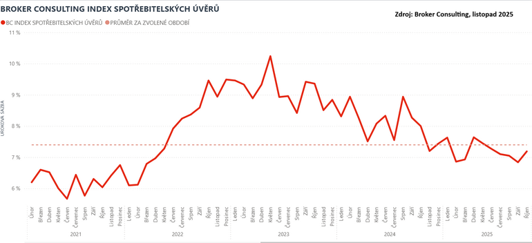 Broker Consulting Index spotřebitelských úvěrů je analytický nástroj, který ukazuje průměrnou úrokovou sazbu